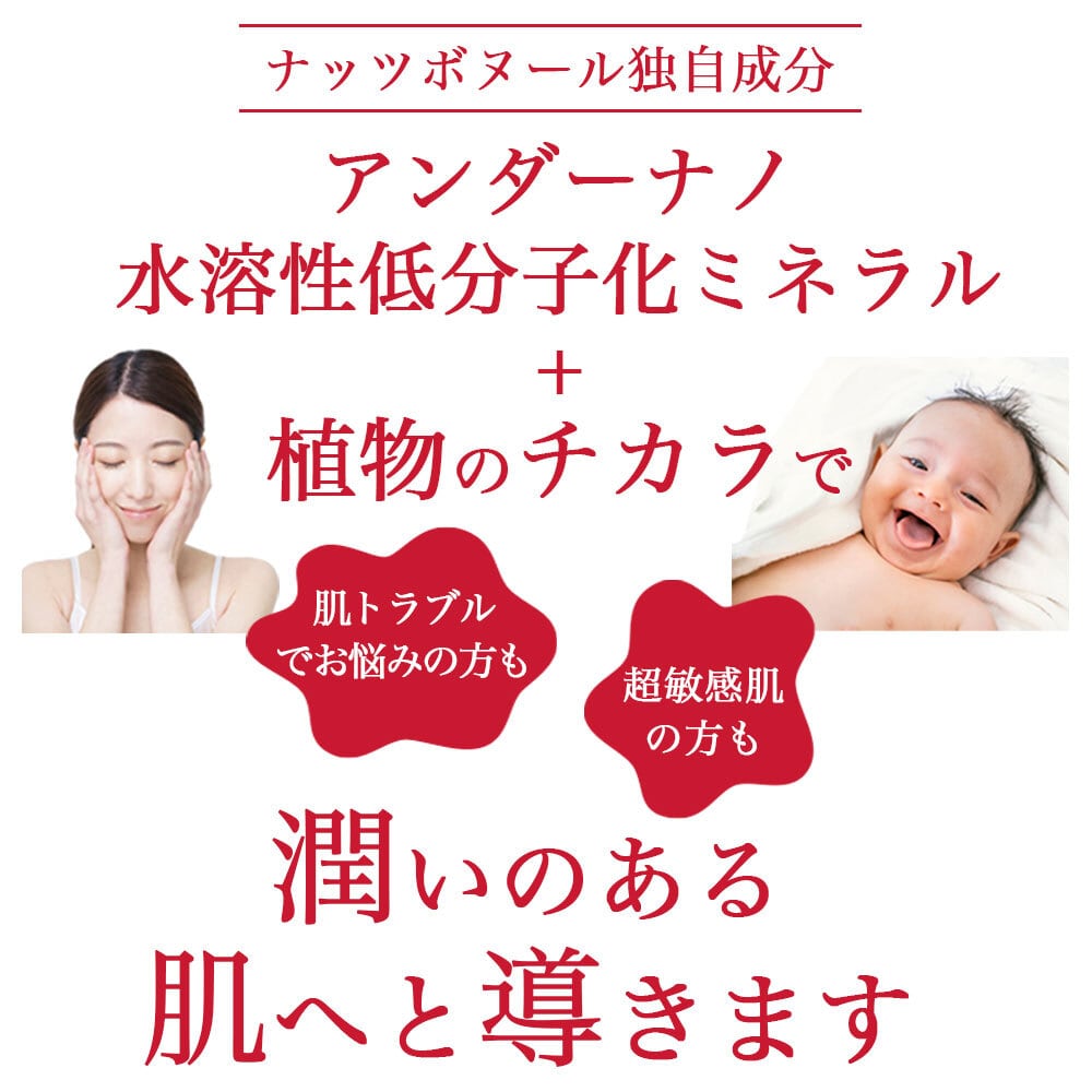 ナッツボヌール 植物醗酵エキスは、150種類以上の植物原料を厳選し、独自の技術でナノサイズに醗酵・分解した、体の内側から肌を整えるインナーケア飲料です。